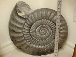 Ammonite Ammonites, related to the modern-day nautilus, are from a group of extinct marine mollusks in the subclass Ammonoidea. These predatory sea creatures maintained a diet of shrimp, starfish, and other small marine animals. In modern times ammonite fossils are used as index fossils because of their wide geographic distribution, well-defined period of existence in Earth’s history, and their ability to be easily identified at the species level. Index fossils are used to help determine the relative age of rock layers. 1990 ~ Mesozoic, Jurassic Fossil